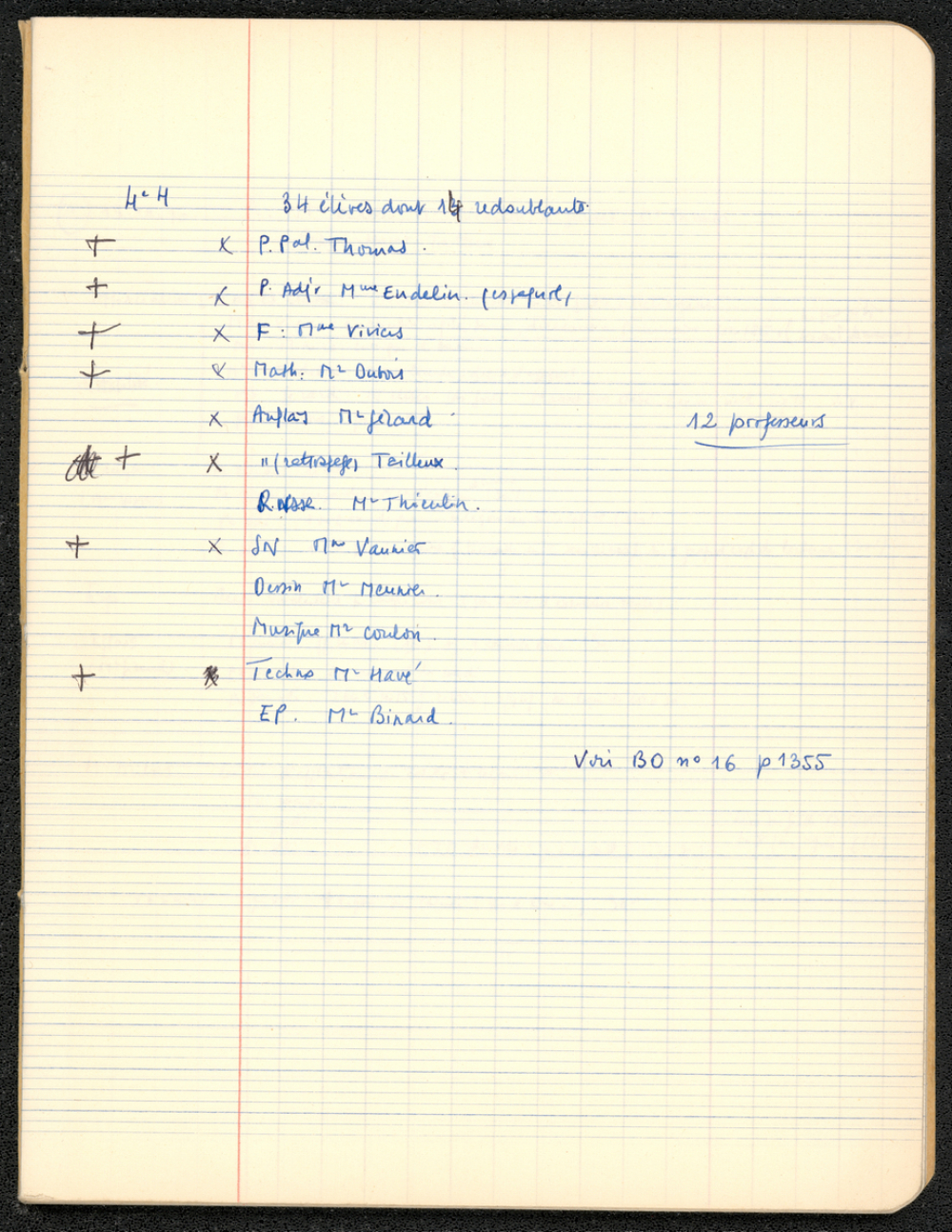 Les noms des élèves et des professeurs sont clairement recensés.