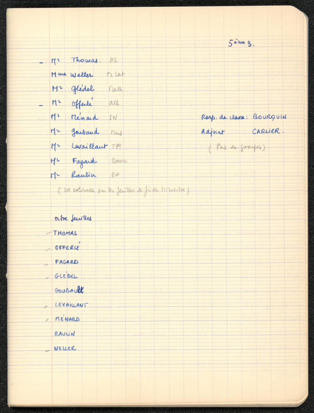 Notes : Il s'agit du cahier de prise de notes de Dominique Thomas, enseignant d'Histoire-Géographie et d'Instruction Civique au lycée Fontenelle (futur collège) de Rouen, sur l'année 1965-1966.