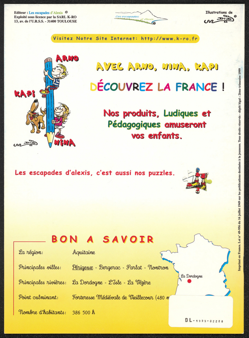 Album de coloriage : Arno, Nina, Kapi découvrent la Dordogne