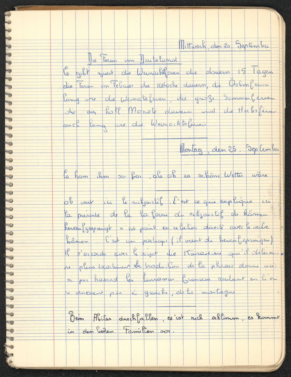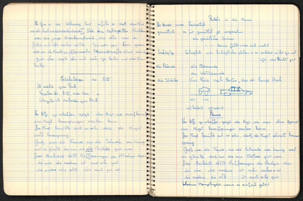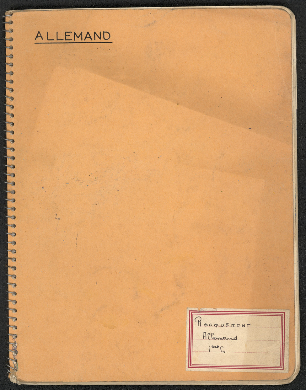 Notes : Il s'agit du cahier d'Allemand de Marie-France Rocquemont (épouse Morel), élève scolarisée probablement dans un lycée francilien en classe de 1ère C1, durant l'année 1961-1962.