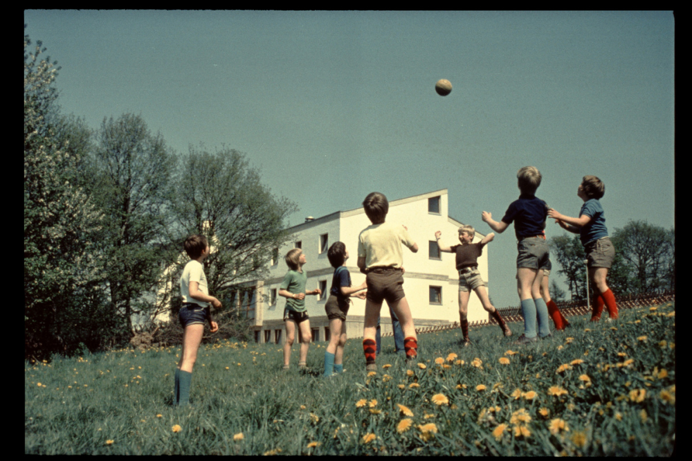 Auberge de jeunesse étrangère : enfants qui jouent au ballon