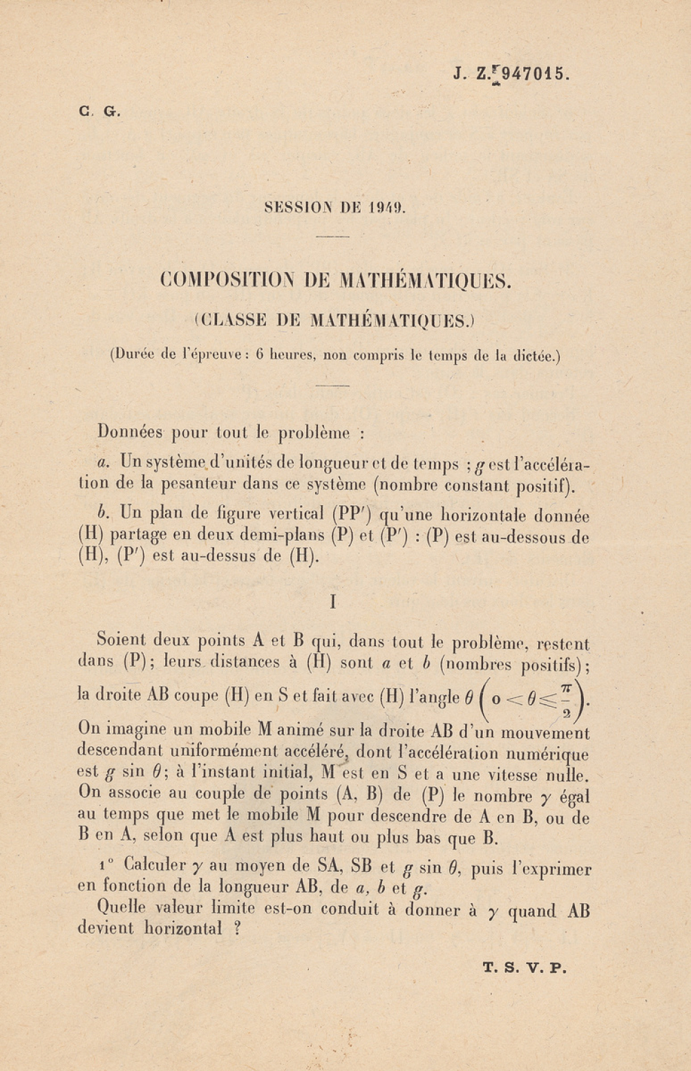 Baccalauréat. Sujets de mathématiques, de 1949 à 1980.