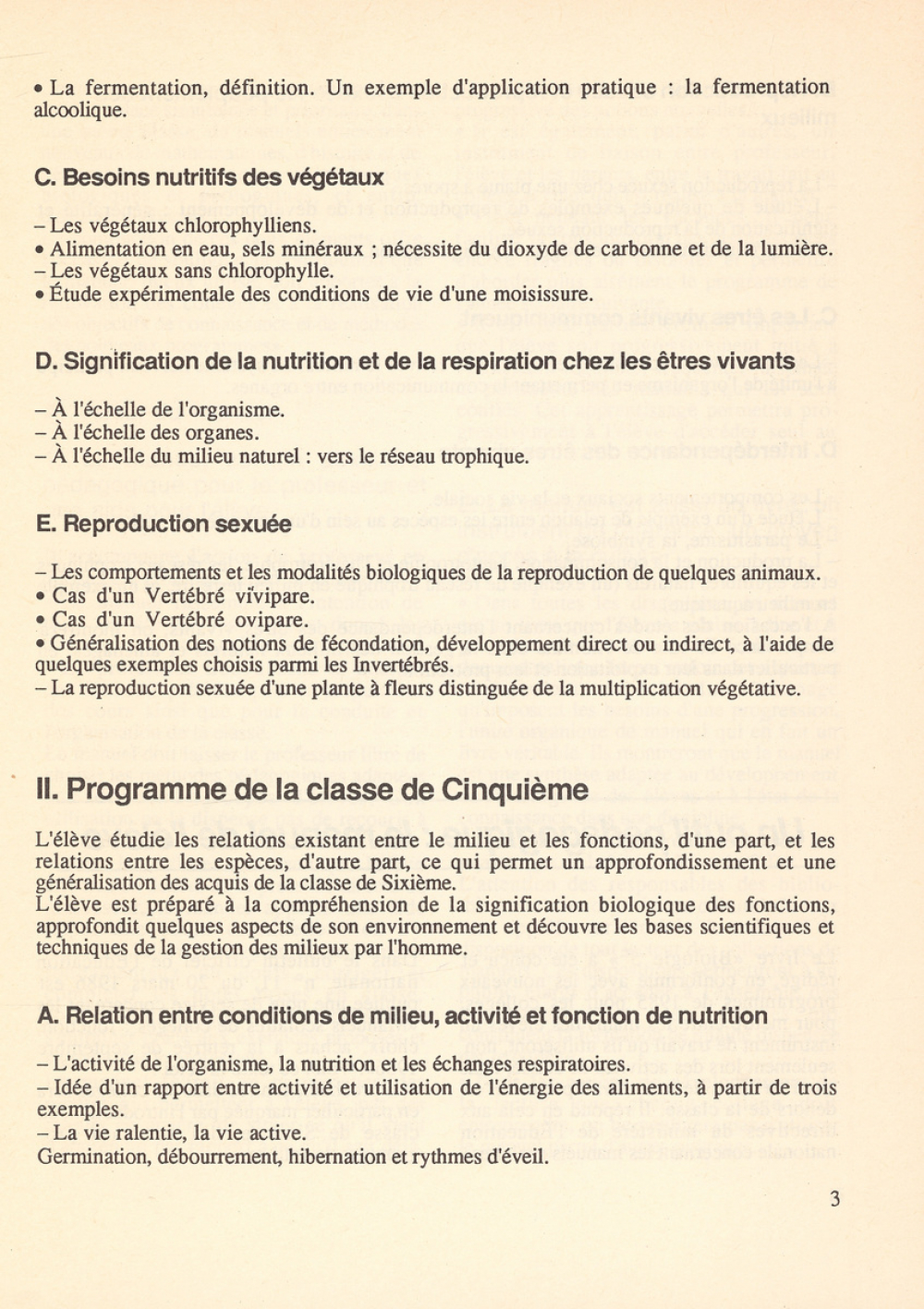 Notes : Présentation des programmes officiels de 6e et 5e (arrêté du 15 novembre 1985), un texte officiel sur les manuels scolaires et leur utilisation, quelques suggestions pédagogiques pour chacun des domaines du prog de 5e.