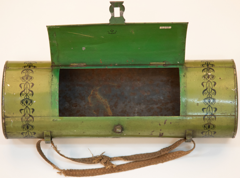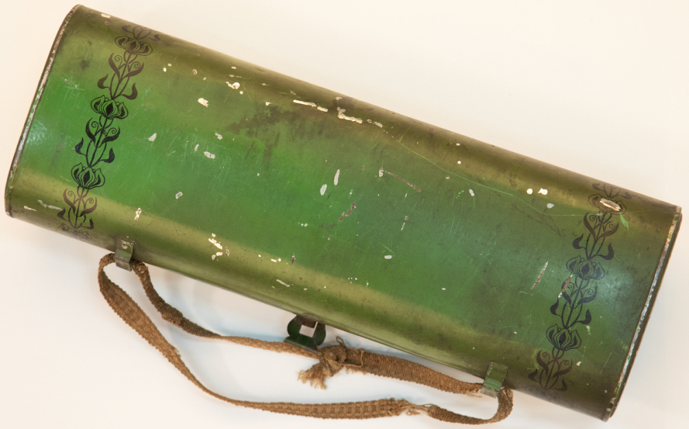 Notes : Les boîtes à botanique utilisées pour la récolte des plantes ont été commercialisées par la manufacture d'armes et cycles de Saint-Etienne entre 1909 et 1935. Ce modèle n'est présenté dans le catalogue de la Manufacture qu'entre 1912 et 1913. Voir page du catalogue de 1913. dans Médias.