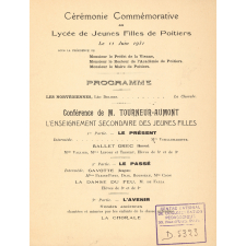 Notes : Programme de la cérémonie du cinquantenaire au Lycée de Jeunes Filles de Poitiers le 11 juin 1931 ; discours prononcé.