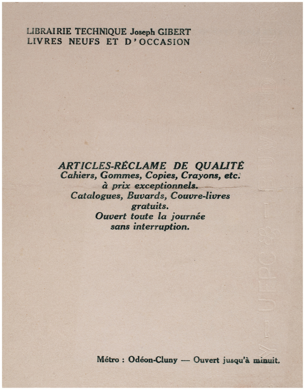 Buvard publicitaire. Librairie technique Joseph Gibert.