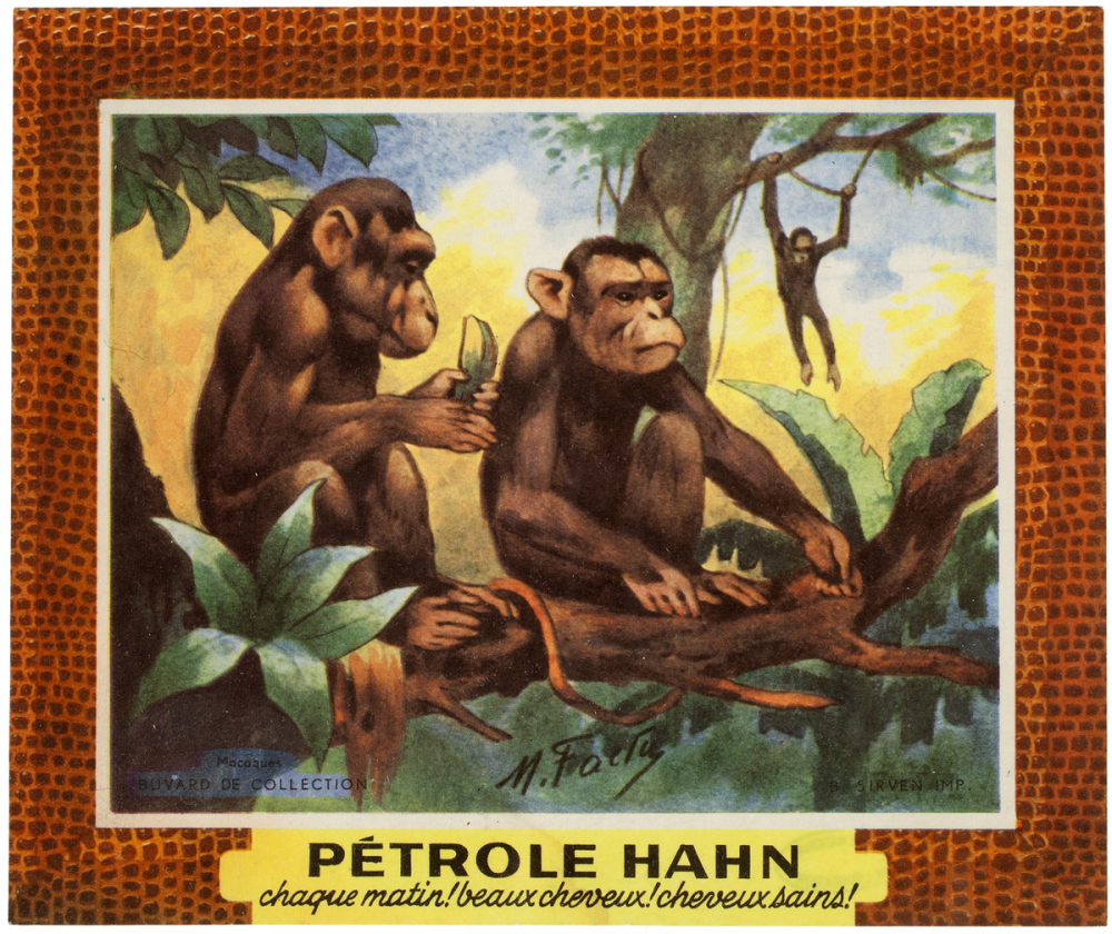 Buvard publicitaire. Pétrole Hahn. Macaques.