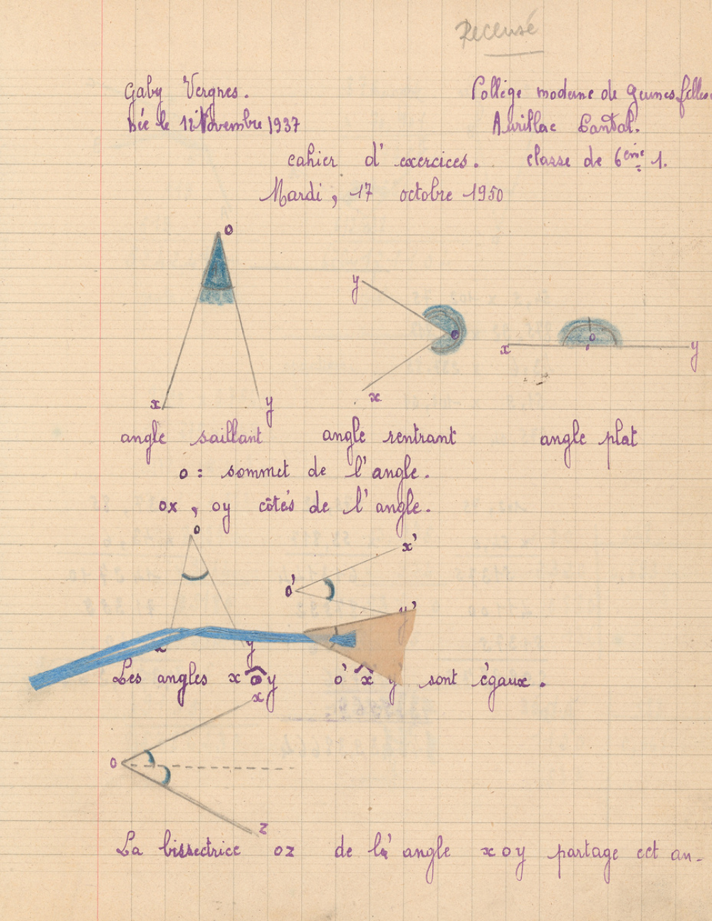 Voir autres cahiers de la même élève.