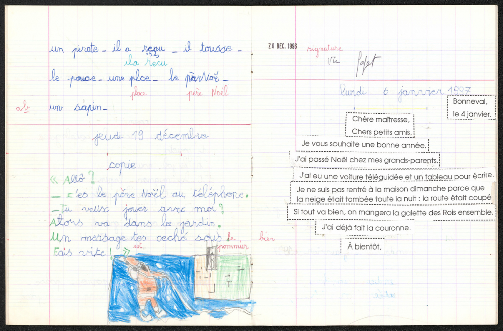 Notes : Il s'agit du deuxième cahier journalier de l'élève Jules Bittard, alors scolarisé en classe de CP à l'Ecole primaire Savorgnan de Brazza d'Auxerre, durant l'année 1996-1997.