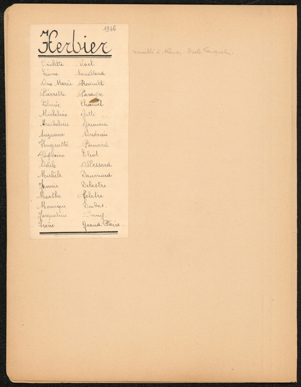 Notes : Herbier constitué par plusieurs élèves d'une classe de l'école Vauquelin à Rouen.