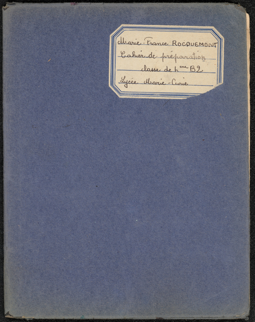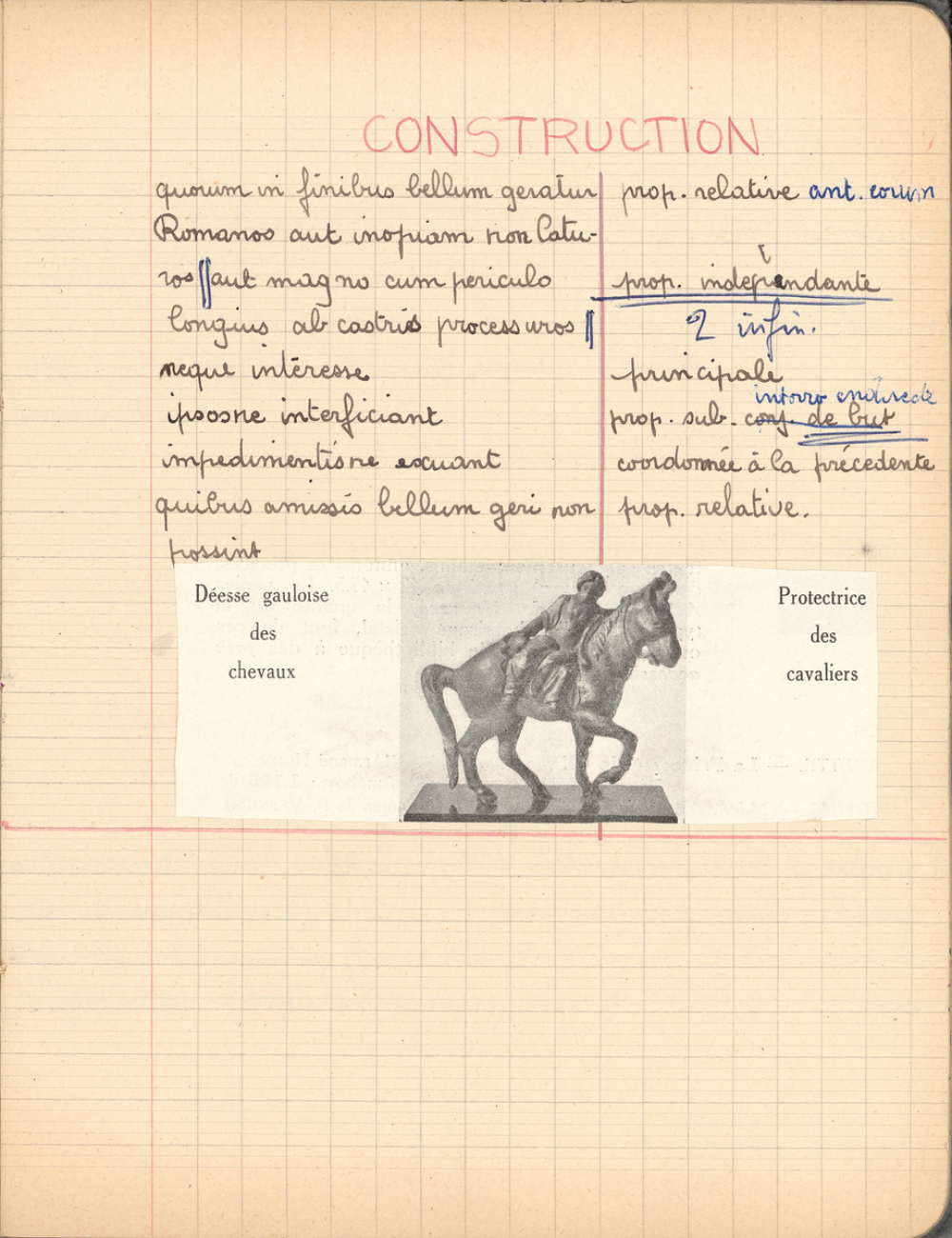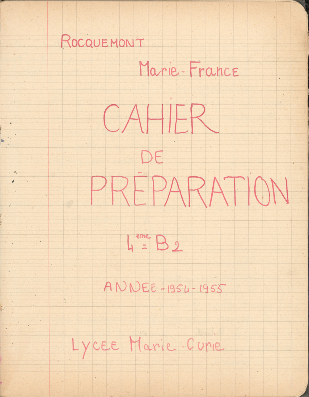 Notes : Il s'agit du cahier de latin de Marie-France Rocquemont (épouse Morel), élève alors scolarisée au lycée Marie Curie de Sceaux (Hauts de Seine, ex-Seine) en classe de 4e B2, durant l'année 1954-1955.