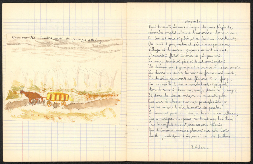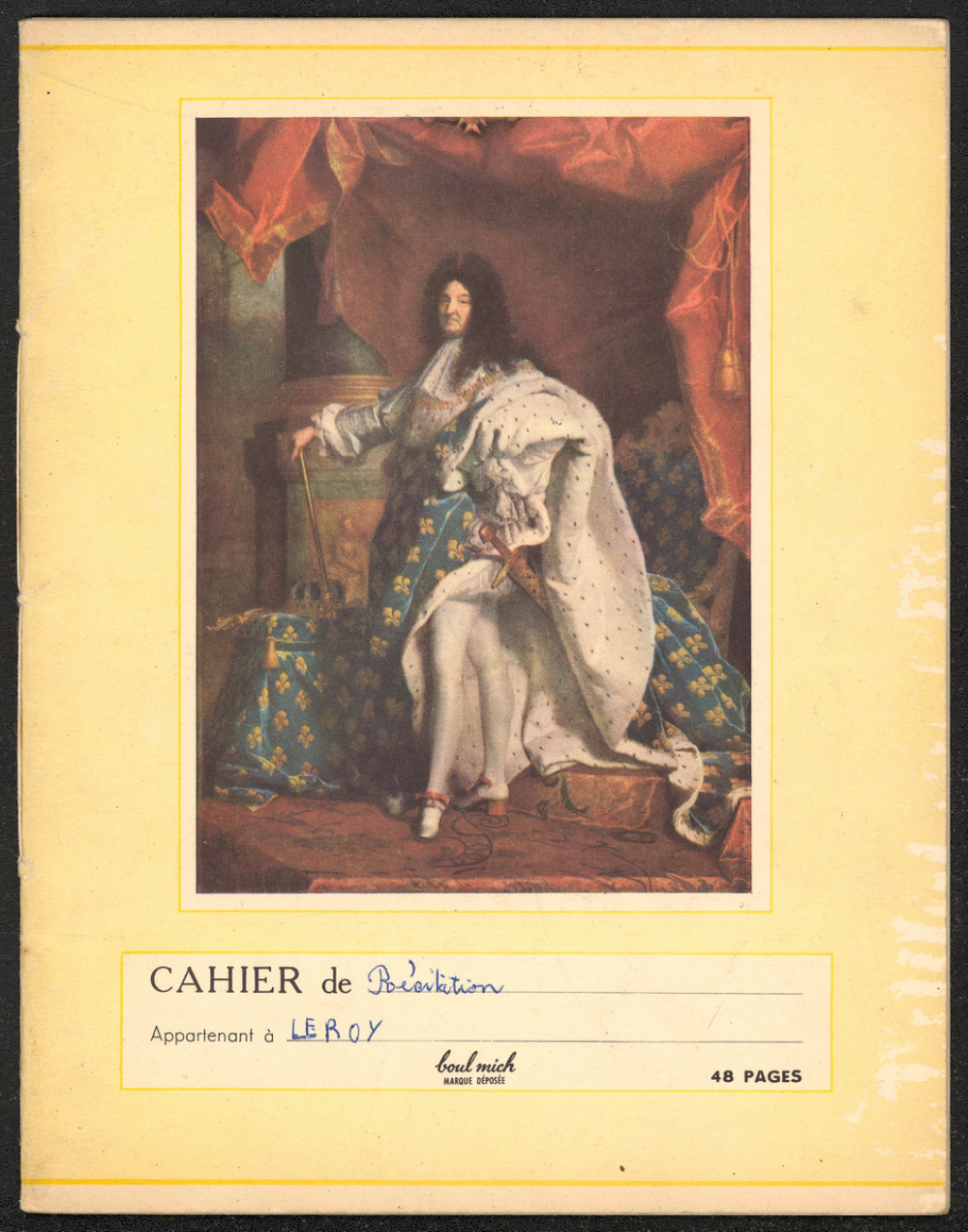 Notes : Cahier de récitation de Martine Leroy-Bouveyron (née Leroy) alors âgée de 10 ans, élève de CM2, à l'école communale de la rue Saint Benoît à Paris (VIIe arrondissement), durant l'année 1957 à 1958.