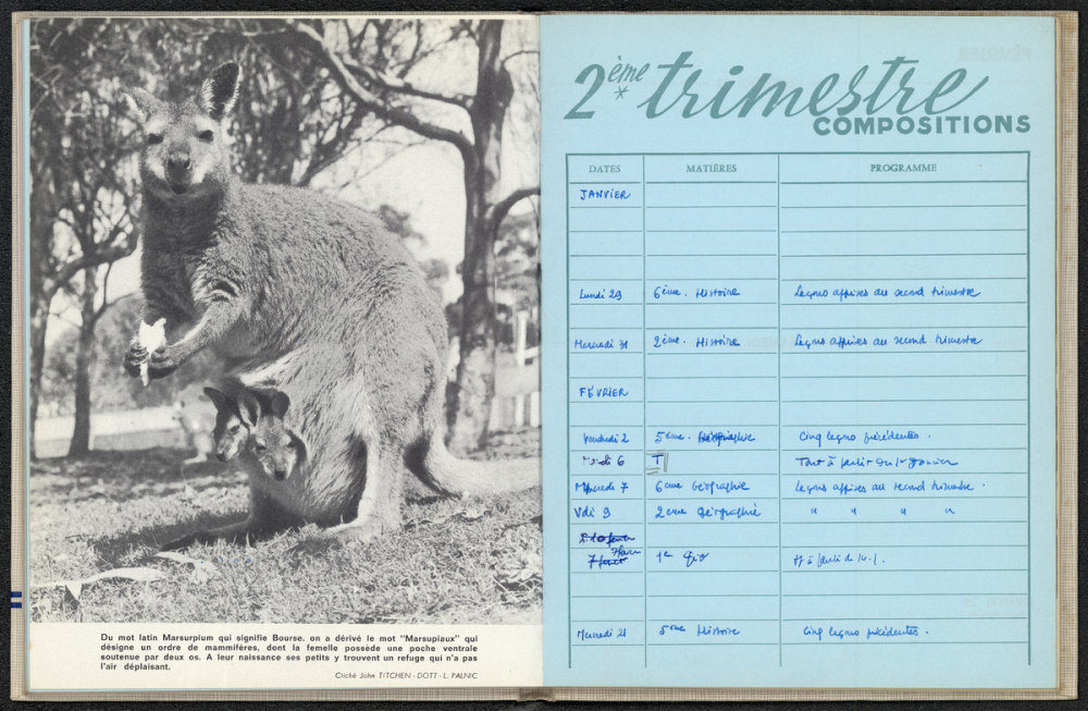Notes : Il s'agit de l'agenda scolaire de Dominique Thomas, enseignant d'Histoire-Géographie et d'Instruction Civique au lycée Fontenelle (futur collège), ainsi qu'au lycée Jeanne d'Arc de Rouen, durant l'année 1967-1968.