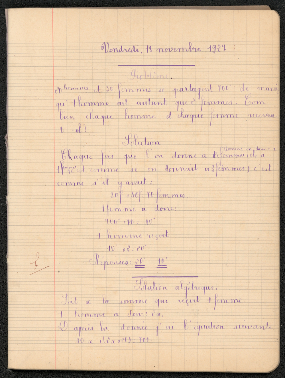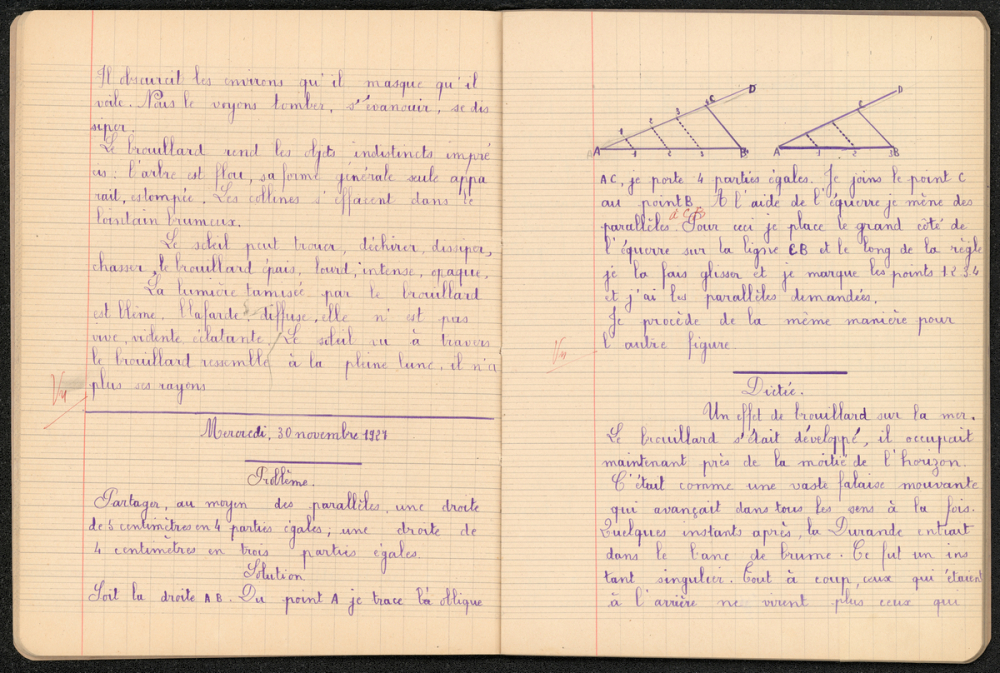 Notes : Cahier du jour appartenant à Anne-Marie Dargaud pour l'année scolaire 1927-1928.