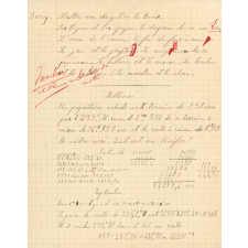 Description : Cahier en papier vergé à la couverture en papier fort bleu et à la reliure brochée au fil. Réglure 5x5, écrit à l'encre noire, avec quelques mentions à l'encre rouge.