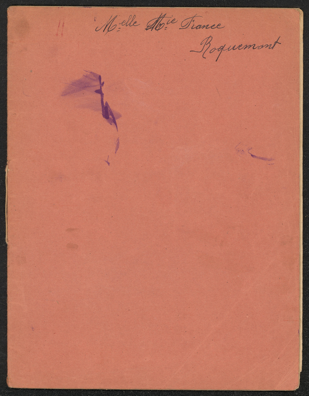 Description : Couverture en papier souple rose. Reliure cousue. Réglure à simple interligne 3 mm avec marge rose.