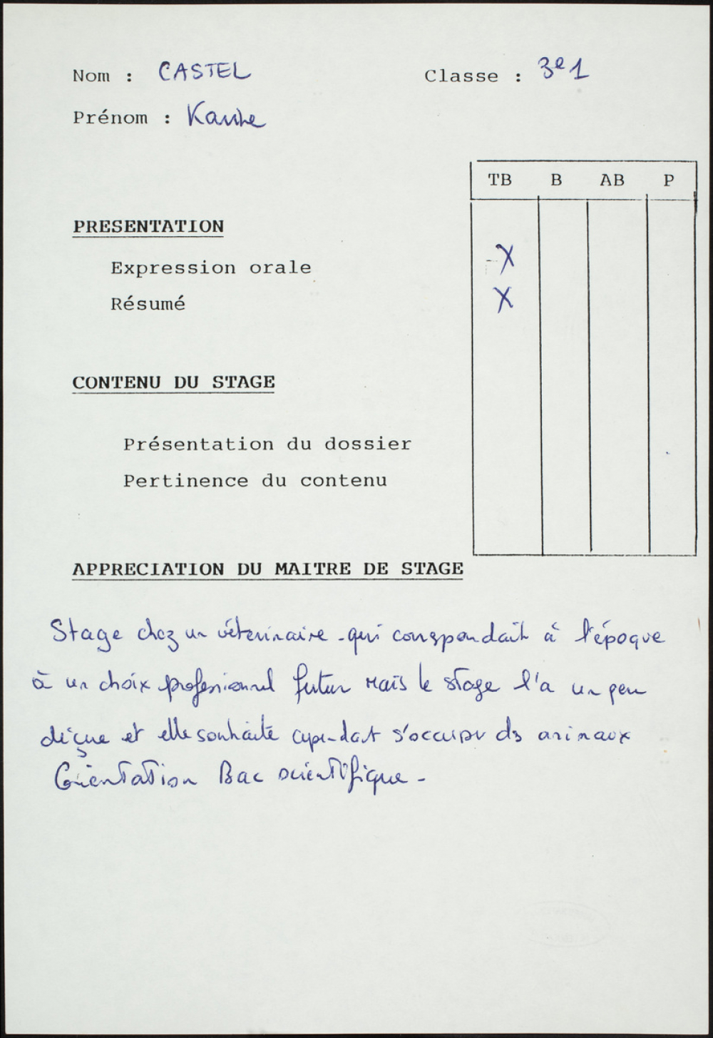 Collège de Damville. Stage de 3e. Évaluation de stage