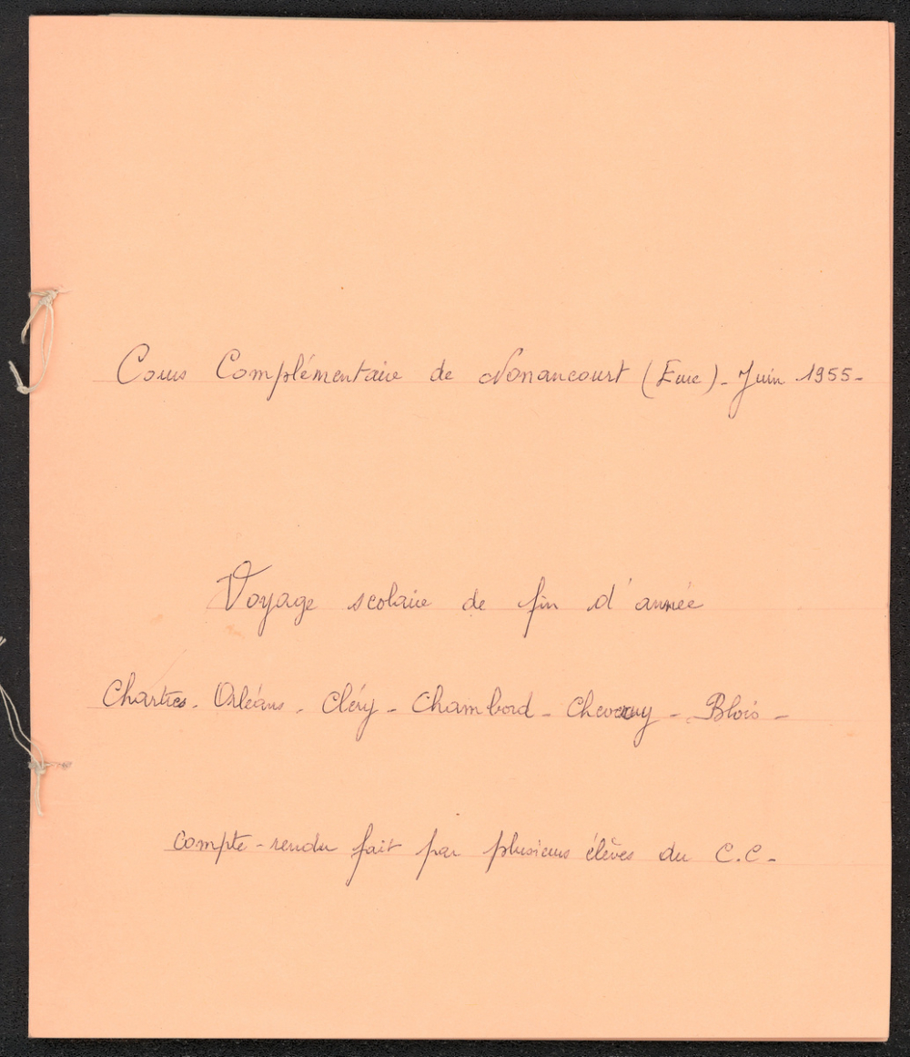 Notes : Il s'agit d'un compte rendu d'un voyage scolaire de fin d'année effectué en 1955 dont l'auteur inconnu est un des élèves du Cours Complémentaire de l'école.