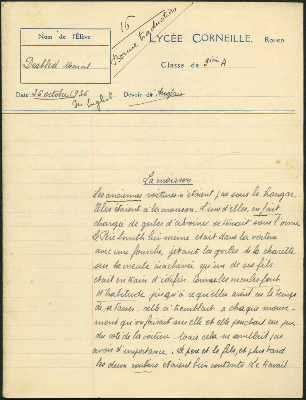 Devoir d'anglais - Lycée Corneille, Rouen, classe de 3ième A