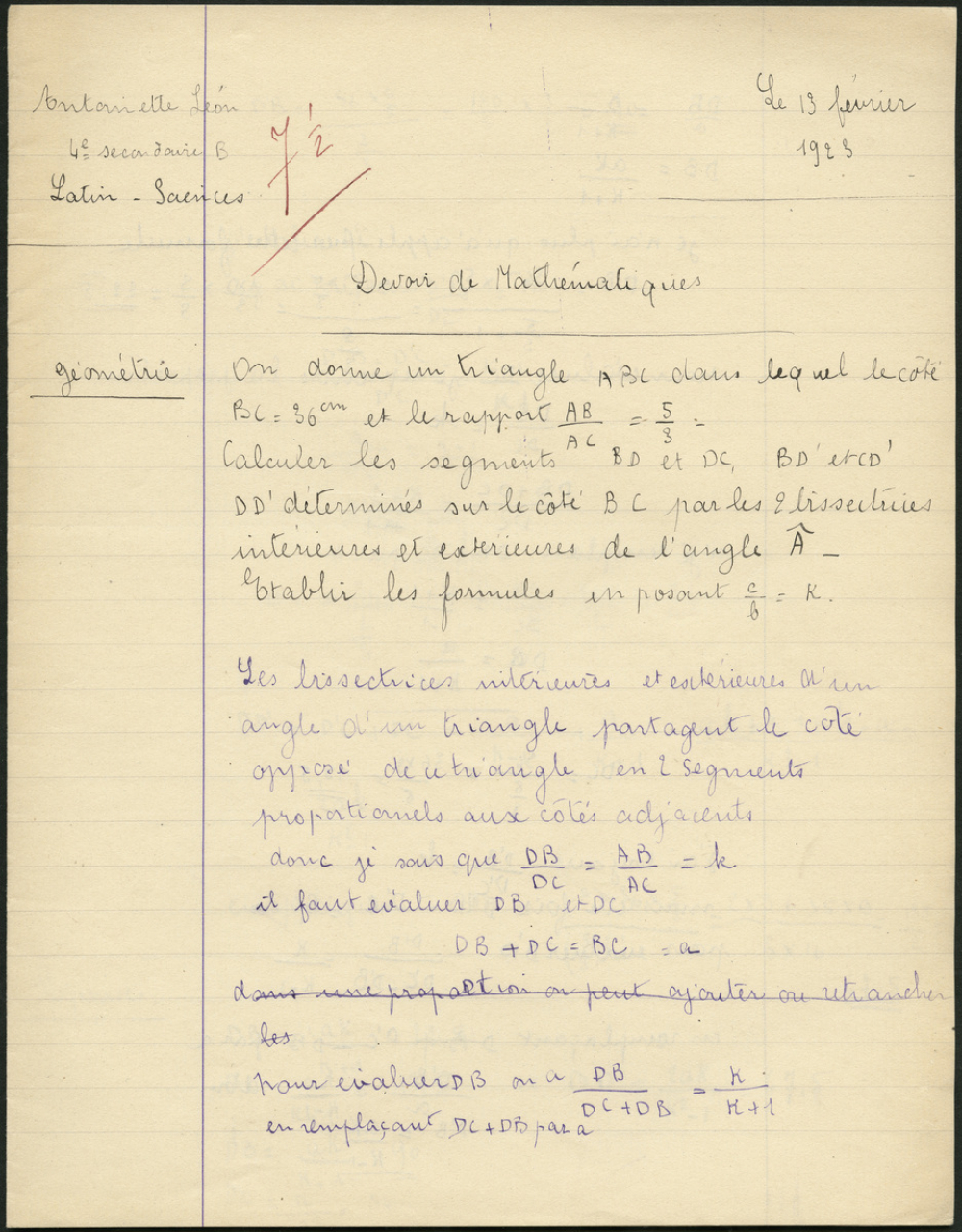 Description : Réglure simple 8 mm. Manuscrit encre bleue, rouge et noire.