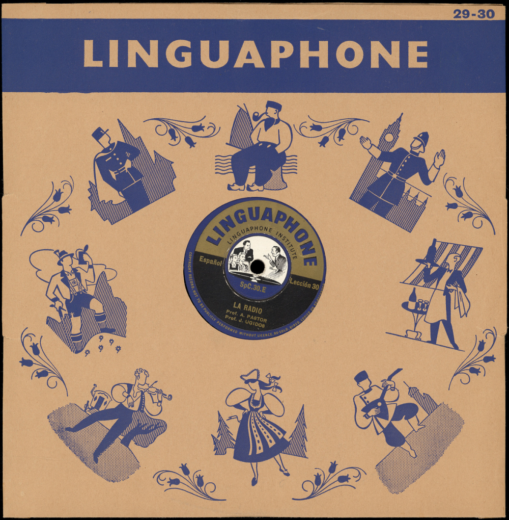 Description : Pochette en papier illustrée en bleu contenant un disque 78 tours.