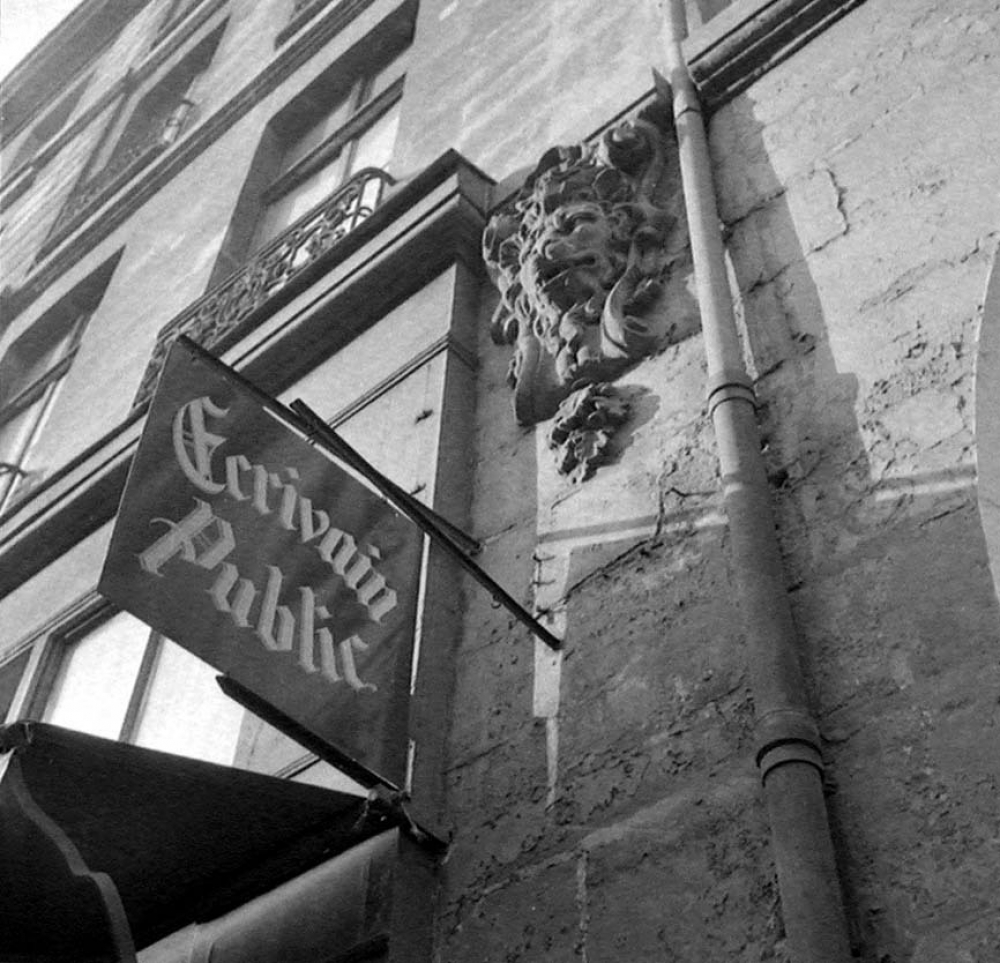 Représentations : représentation d'objet : / Le visuel représente une pancarte portant l'inscription : Ecrivain Public