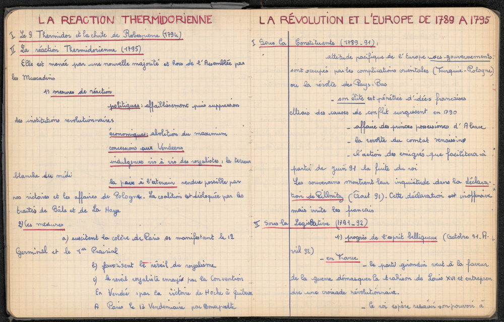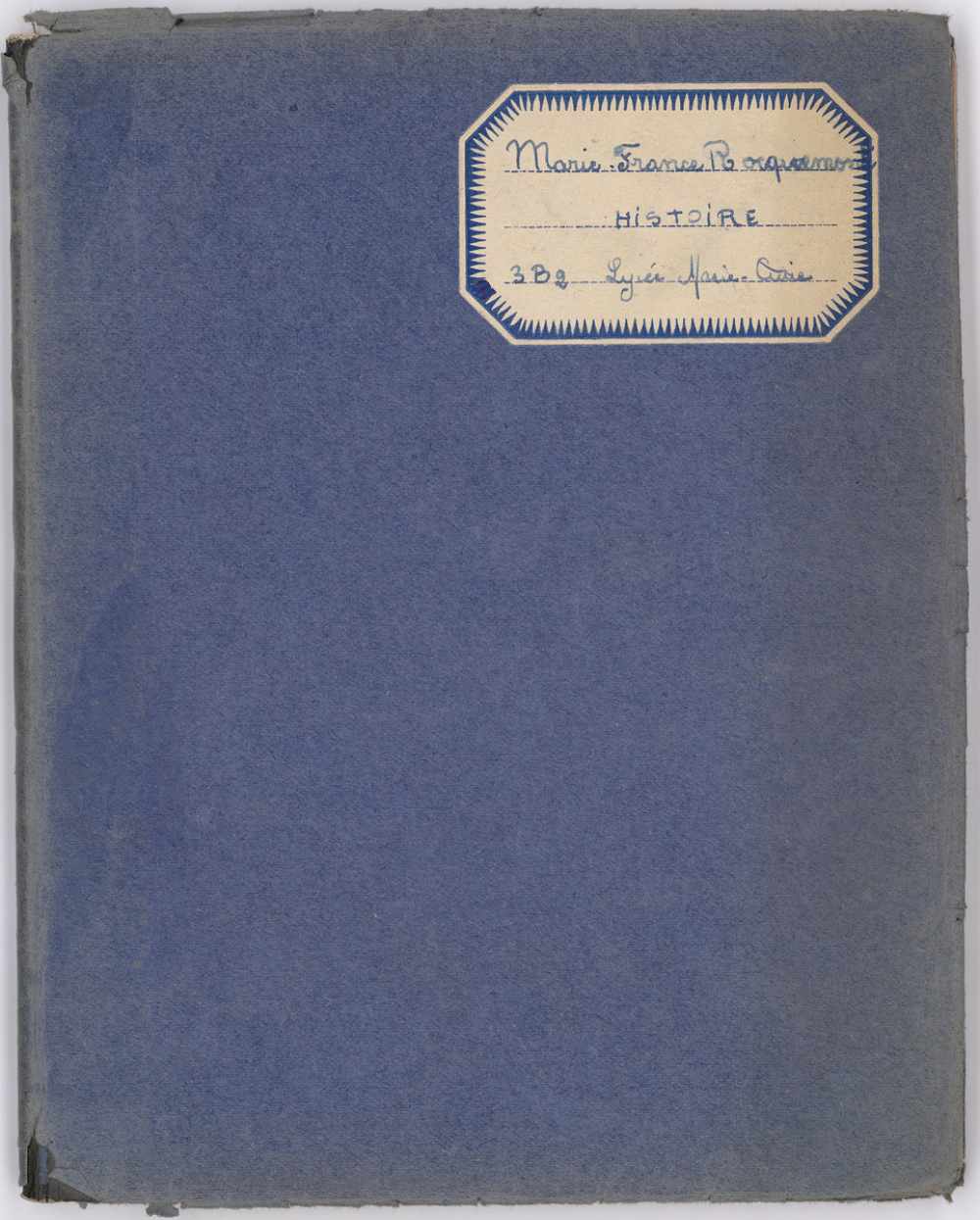 Notes : Il s'agit du cahier d'Histoire de Marie-France Rocquemont (épouse Morel), élève alors scolarisée au lycée Marie Curie de Sceaux (Hauts de Seine, ex-Seine) en classe de 3e B2, durant l'année 1955-1956.