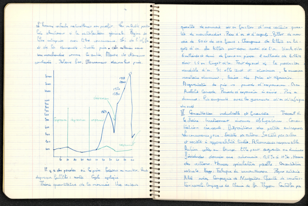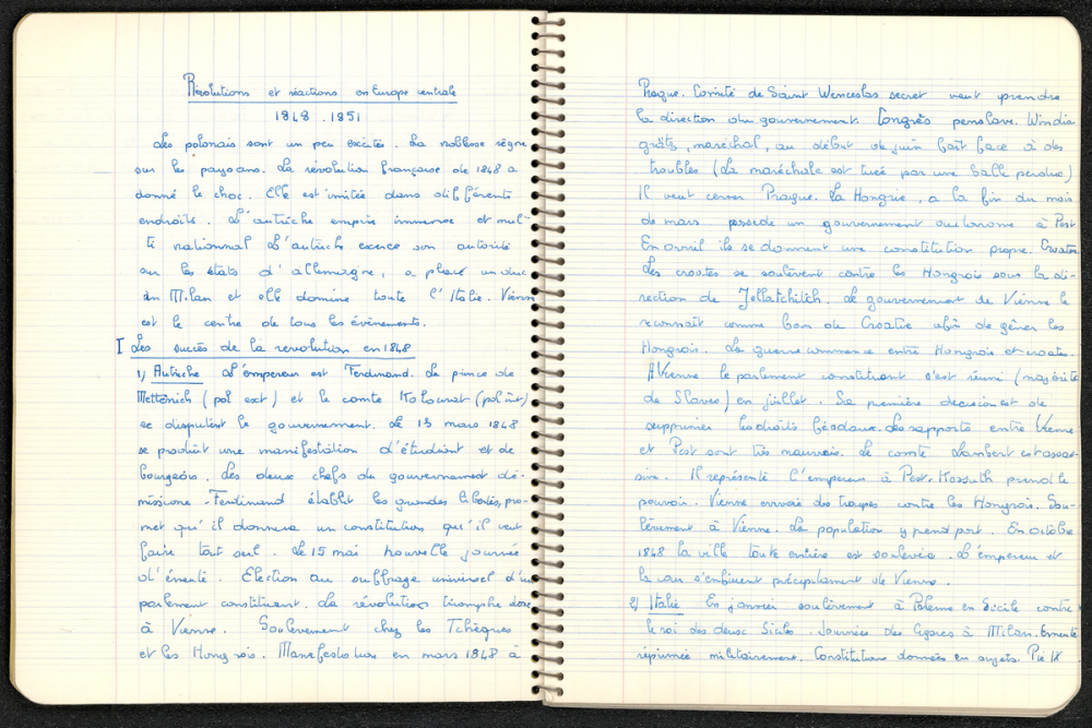 Notes : Il s'agit du cours d'Histoire de Marie-France Rocquemont (épouse Morel), élève alors scolarisée au lycée Marie Curie de Sceaux (Hauts de Seine, ex-Seine) en classe de Terminale série Mathématiques élémentaires, durant l'année 1958-1959.