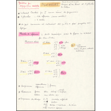 Description : Classeur marron avec 4 anneaux en métal. Il contient 66 pochettes en plastiques renfermant des feuilles polycopiées ou manuscrites.