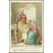 Texte imprimé dans le cartouche inférieur : "Saint Joseph protecteur de la Sainte Famille priez pour nous".