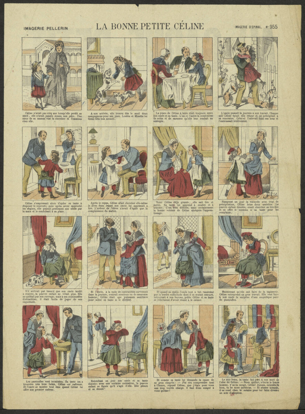 Notes : Thème : Céline, une petite orpheline recueillie par sa tante et son oncle, se montre très vertueuse et en est récompensée en étant adoptée par le couple.