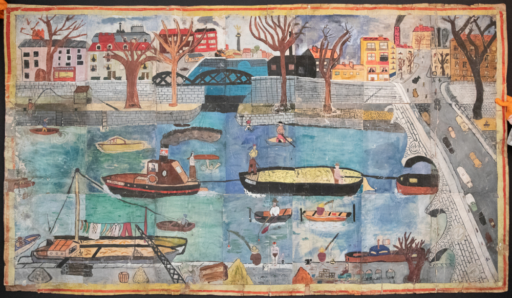 Notes : Fresque réalisée sous la direction du peintre Jean Lombard. Collection Lombard - Langevin. Vie très animée sur le fleuve et sur les quais.
