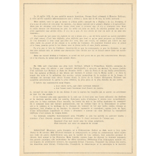 Description : Petit livret en papier épais composé d'une unique feuille pliée en deux. 4 pages comprenant une couverture en chromolithographie rouge, avec texte et liseré ornemental à motifs végétaux sur le côté gauche, ainsi que 3 pages de textes et partitions imprimés en noir et rouge.