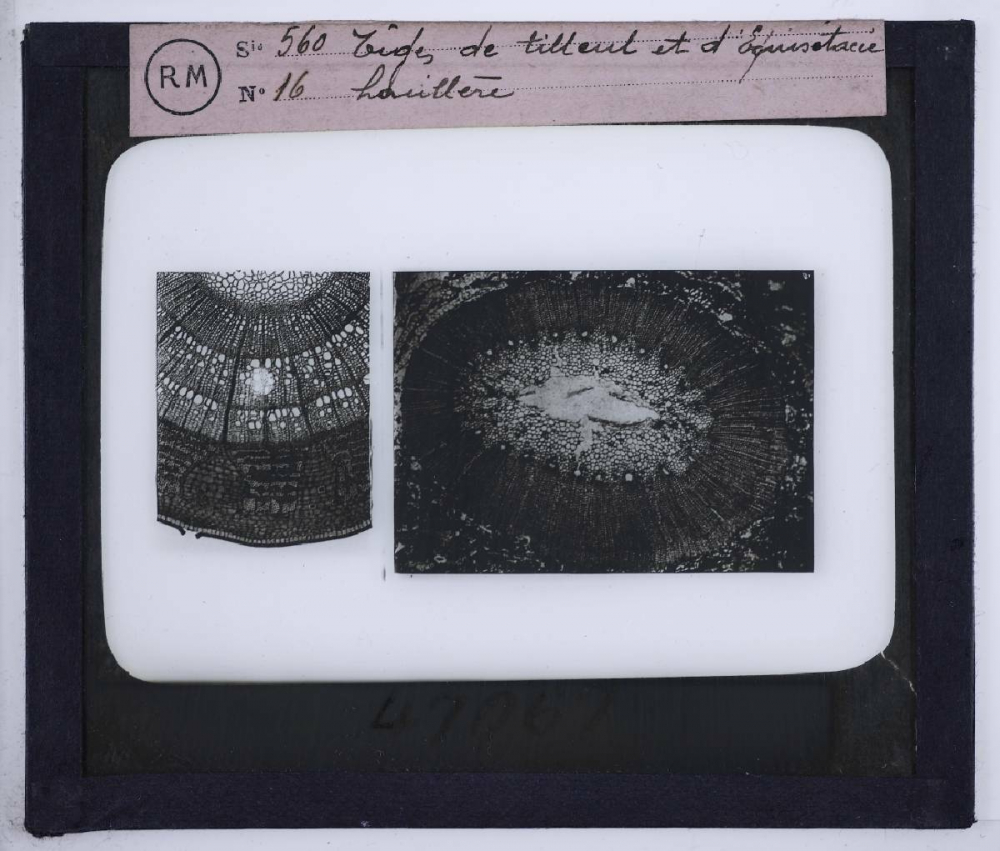 Les Transformations du monde végétal. Tiges de tilleul et d'Equisetacée houillère.