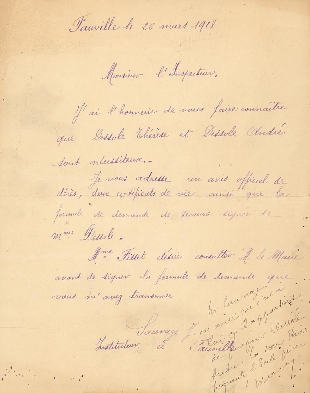 Notes : Lettre à l'inspecteur.
