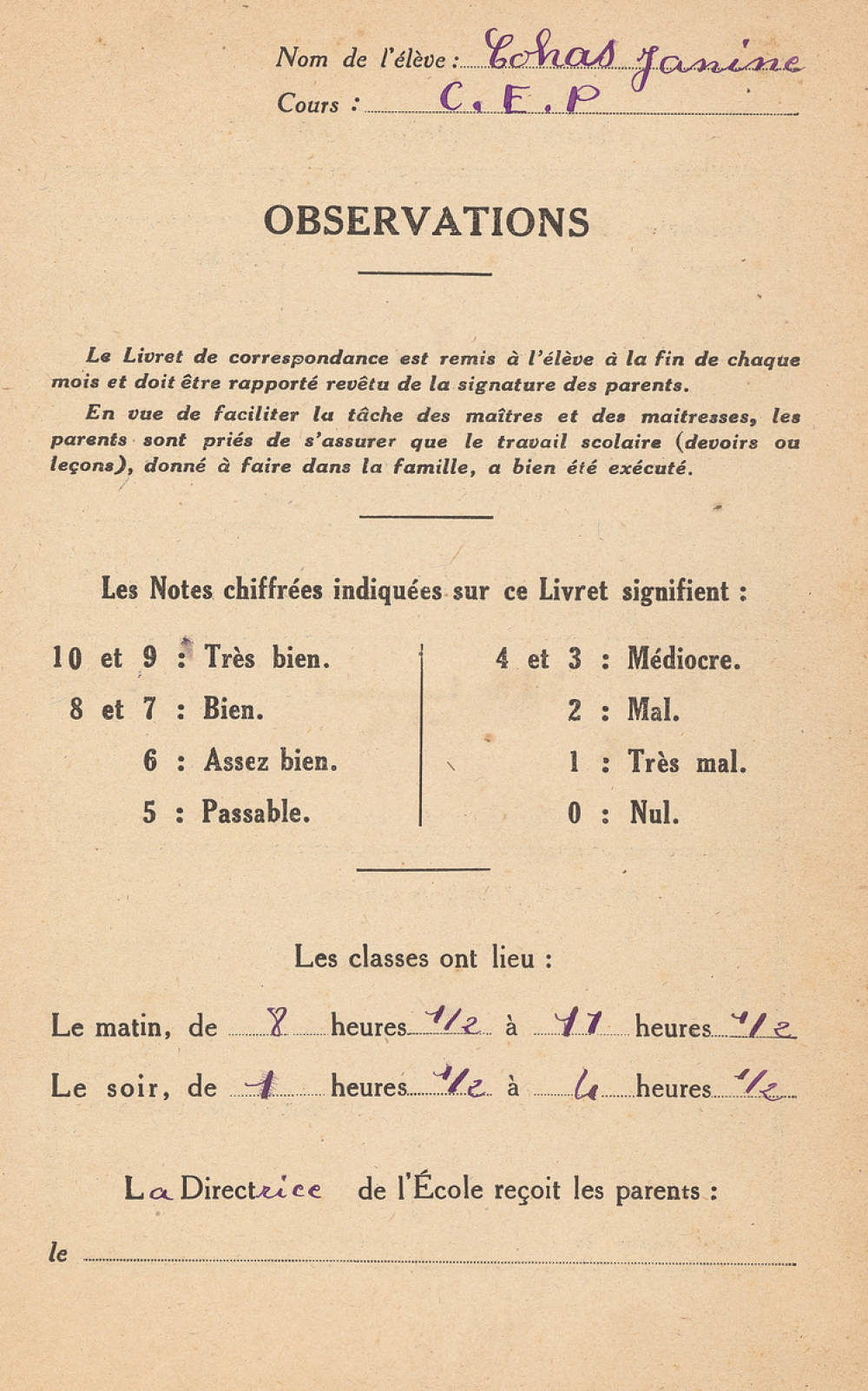 Notes : Titre complet : Livret mensuel de correspondance entre l'école et la famille suivi de notions sur la Morale et l'Hygiène de l'Ecolier, d'un dossier sanitaire, d'un Tableau synoptique de l'année scolaire, etc.
