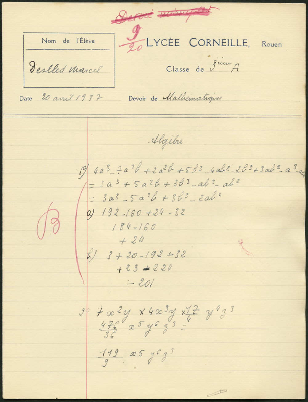 Mathématiques - Lycée Corneille, Rouen, classe de 3ième A