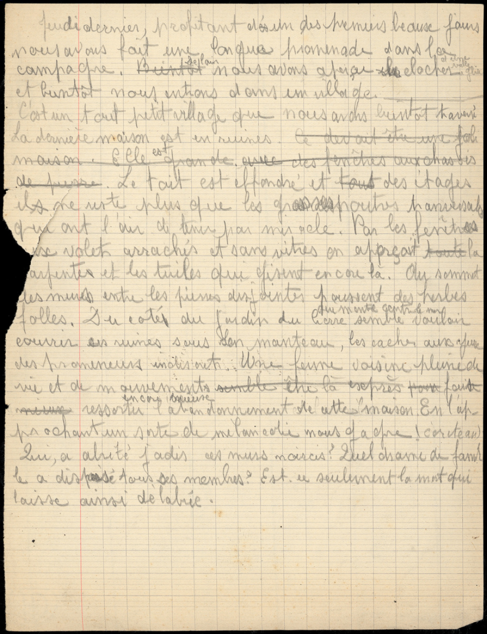 Description : Copie double, réglure seyes, encre noire, crayon de bois et crayon bleu.