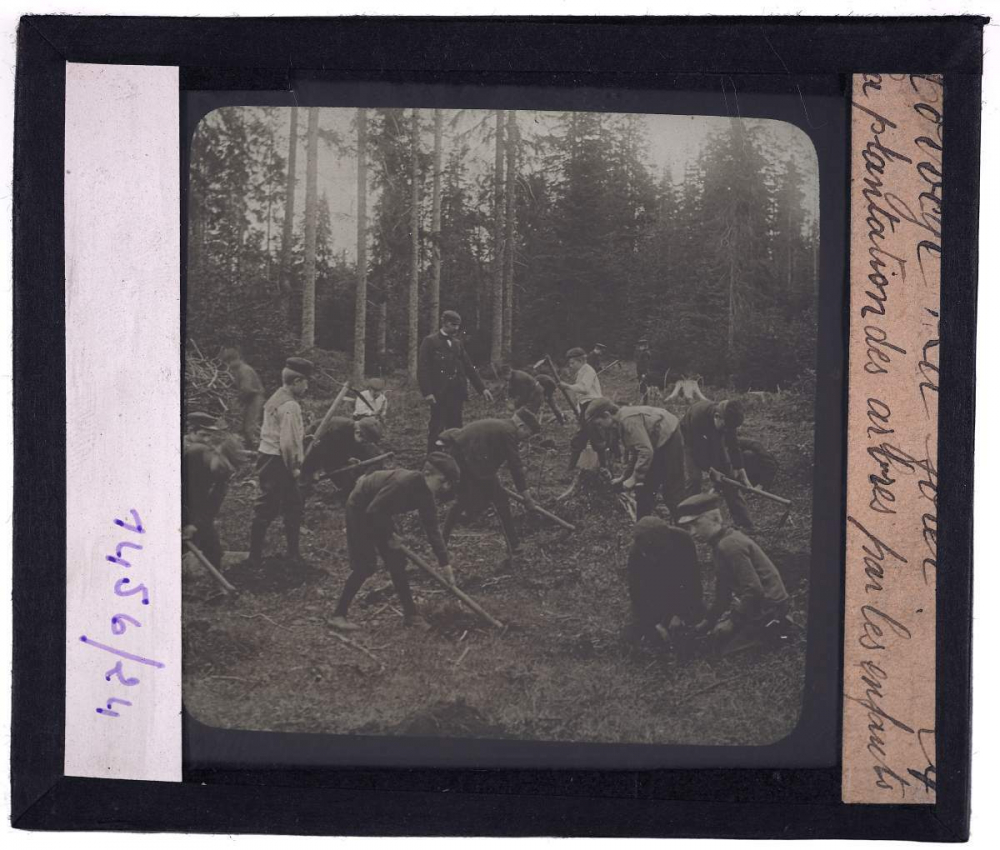 Norvège, la forêt. La plantation des arbres par les enfants.