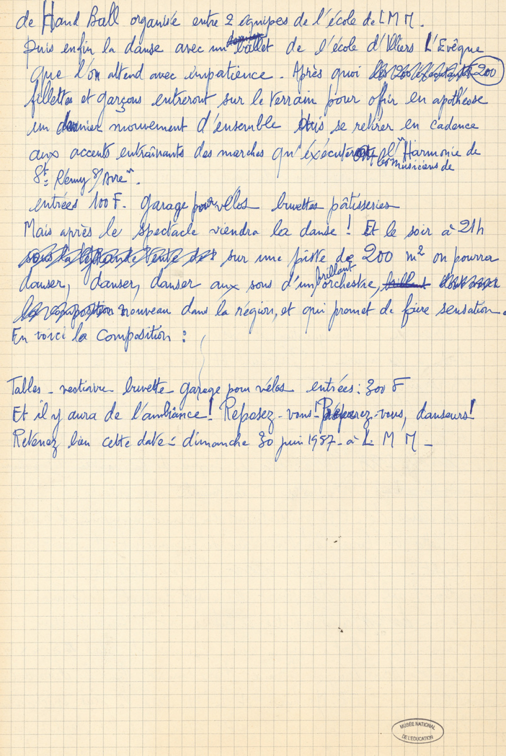 Description : 1 feuille simple à petits carreaux, encre bleue