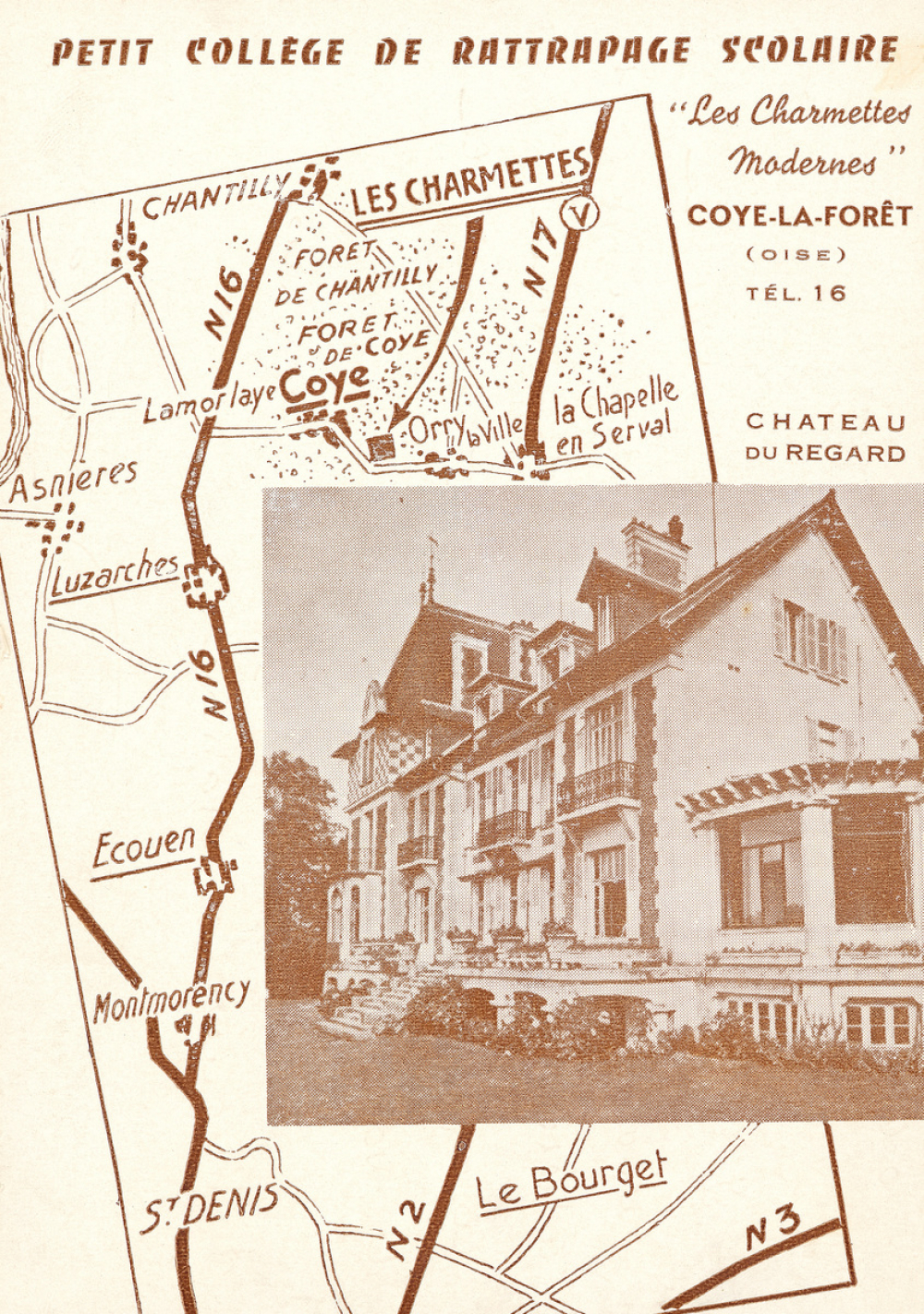 Notes : DEUX documents sur le Petit Collège de rattrapage moderne. Adresse: "Les Charmettes Modernes" à Coye-la Forêt (Oise). Date de 1961 citée dans un texte.