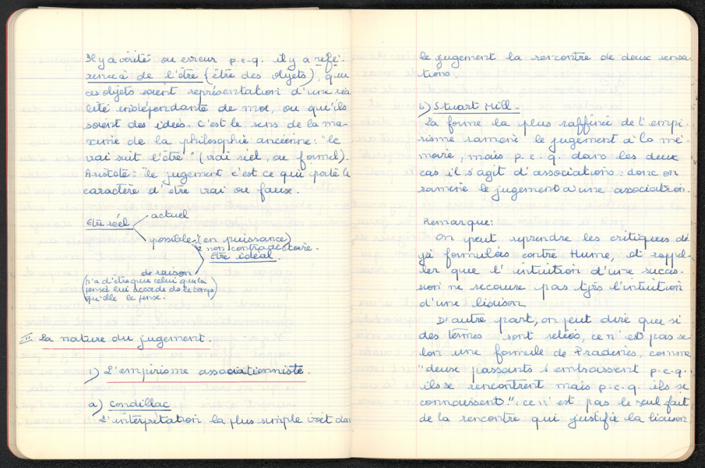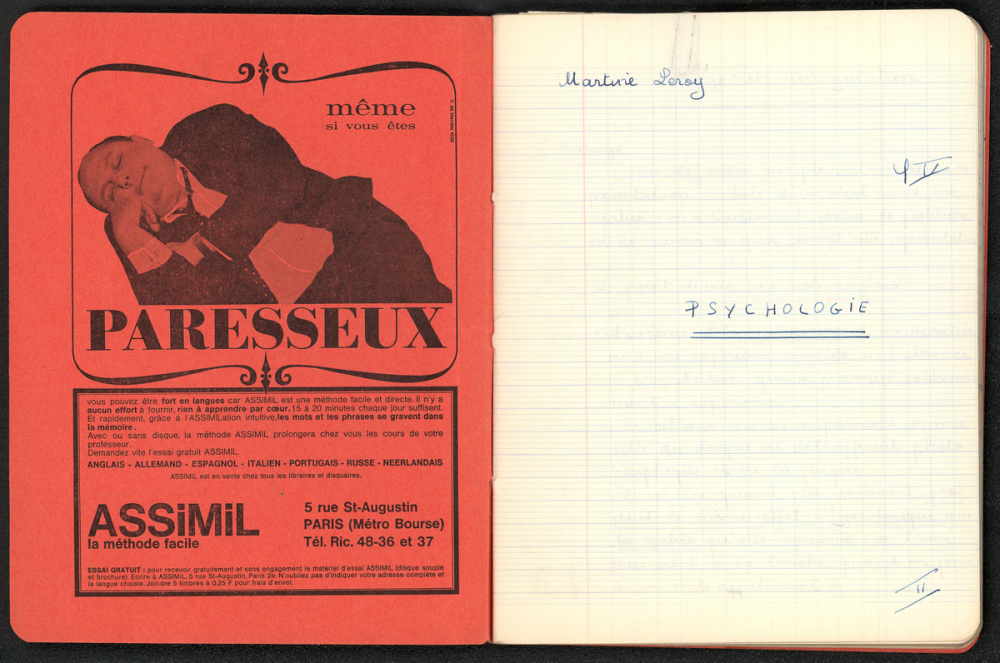 Notes : Cahier de Psychologie de Martine Leroy-Bouveyron (née Leroy) alors âgée de 19-20 ans, élève de classe préparatoire Fontenay, au lycée Claude Monet à Paris (XIIIe arrondissement), durant les années 1966 à 1968.