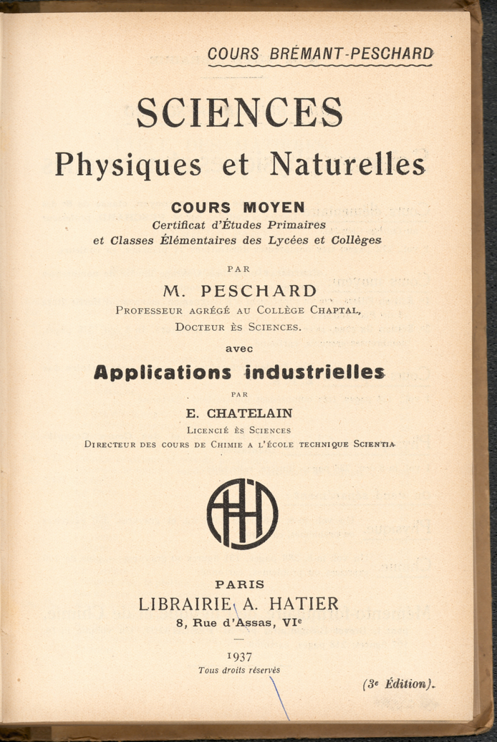 Sciences Physiques et Naturelles : Cours moyen : Certificat d'Etudes Primaires et Classes Elémentaires des Lycées et Collèges : Avec applications industrielles