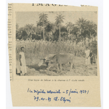 Une leçon de labour à la charrue à l'école rurale (La Dépêche Coloniale, 5 juin 1937).