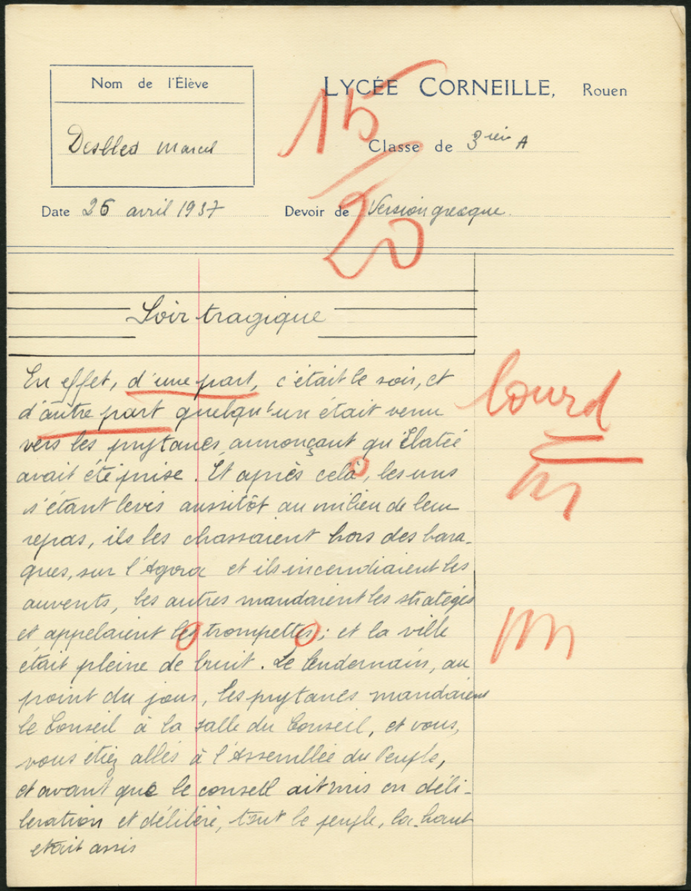 Version grecque - Lycée Corneille, Rouen, classe de 3ième A
