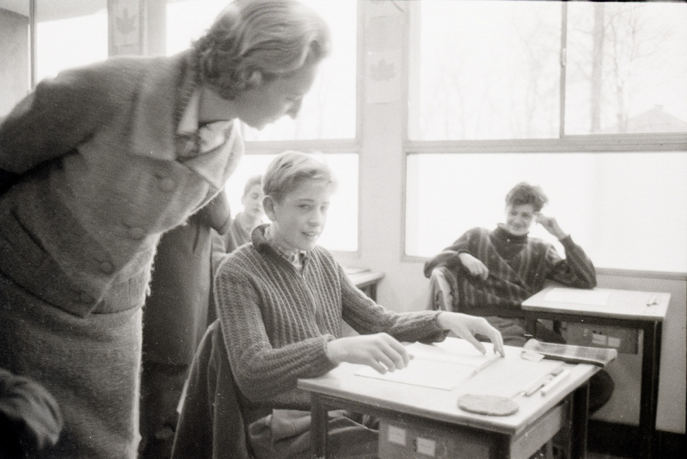 Notes : Le reportage 4753 a été réalisé en 1965 par Jean Suquet (la date du mercredi 20 janvier est inscrite à la craie sur un tableau noir), à l'École nationale de perfectionnement, 6 rue Désiré-Dautier, à Bonneuil-sur-Marne. Les visuels présentent Madame Fouchet en visite. Elle est photographiée dans une serre, dans un atelier et en classe échangeant individuellement avec des élèves. Quelques vues montrent un cours d'éducation physique.