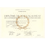 Diplôme du Baccalauréat de l'enseignement du second degré.