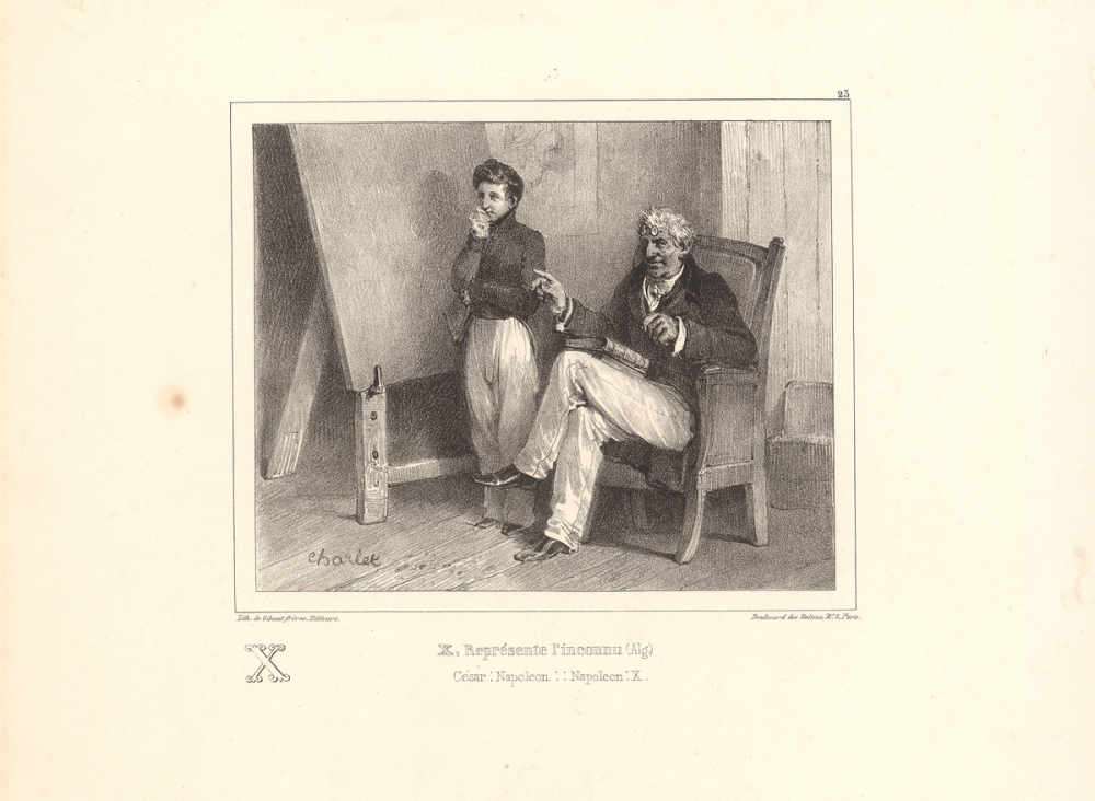 Alphabet moral et philosophique à l'usage des petits et des grands enfans.X. : représente l'inconnu (Alg.). César : Napoléon : : Napoléon : X.