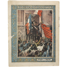 Notes : Recto: En 1848, devant l'Hôtel de Ville, Lamartine fait acclamer le drapeau tricolore, à la place du drapeau rouge.