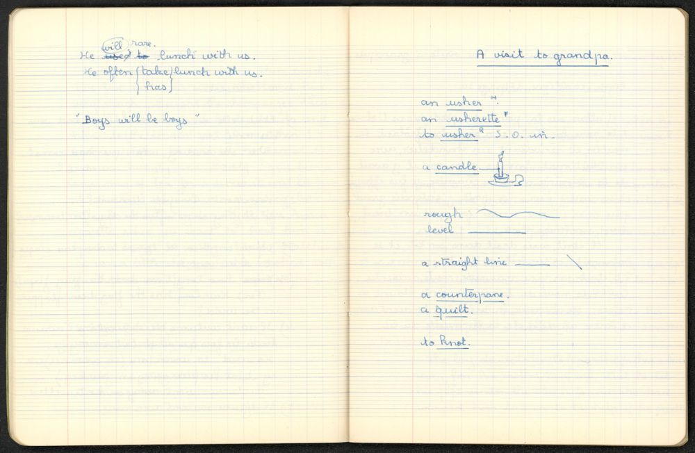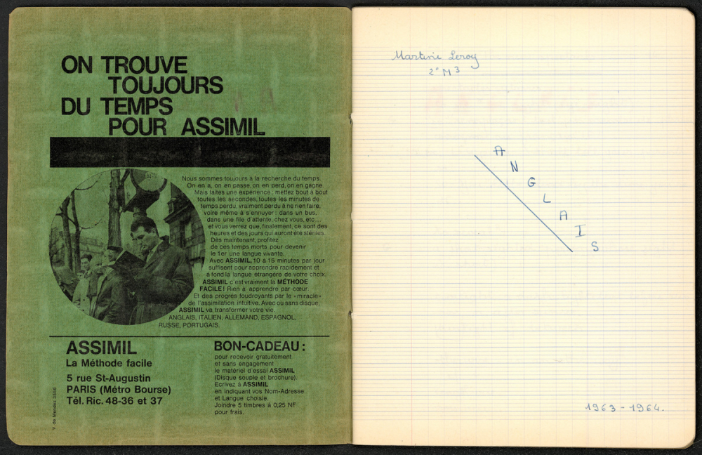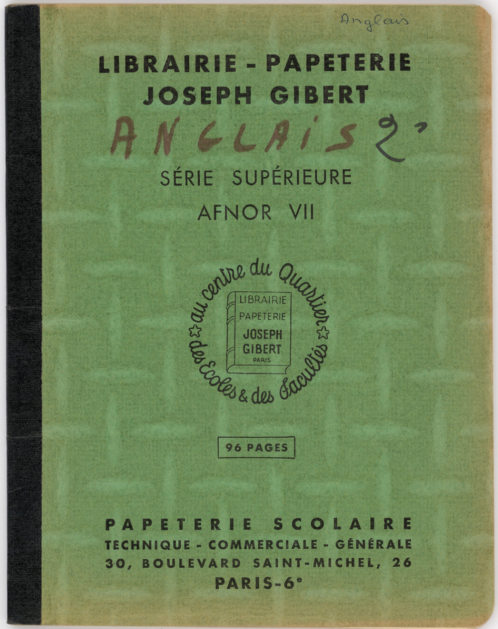 Notes : Cahier d'Anglais de Martine Leroy-Bouveyron (née Leroy) alors âgée de 16 ans, élève de 2nde M3, au Lycée Victor Duruy à Paris (VIIe arrondissement), durant l'année 1963-1964.